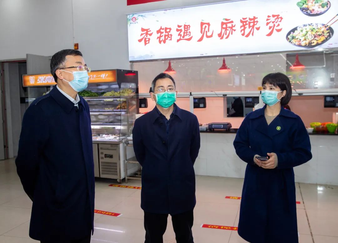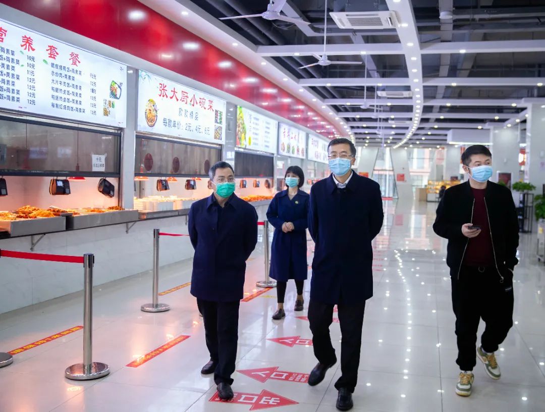 在新校区食堂,邱军强调,工作人员的核酸检测和疫情防控知识培训要更规范,要严格按照要求把控住食堂这种人流量大的区域的疫情防控工作。