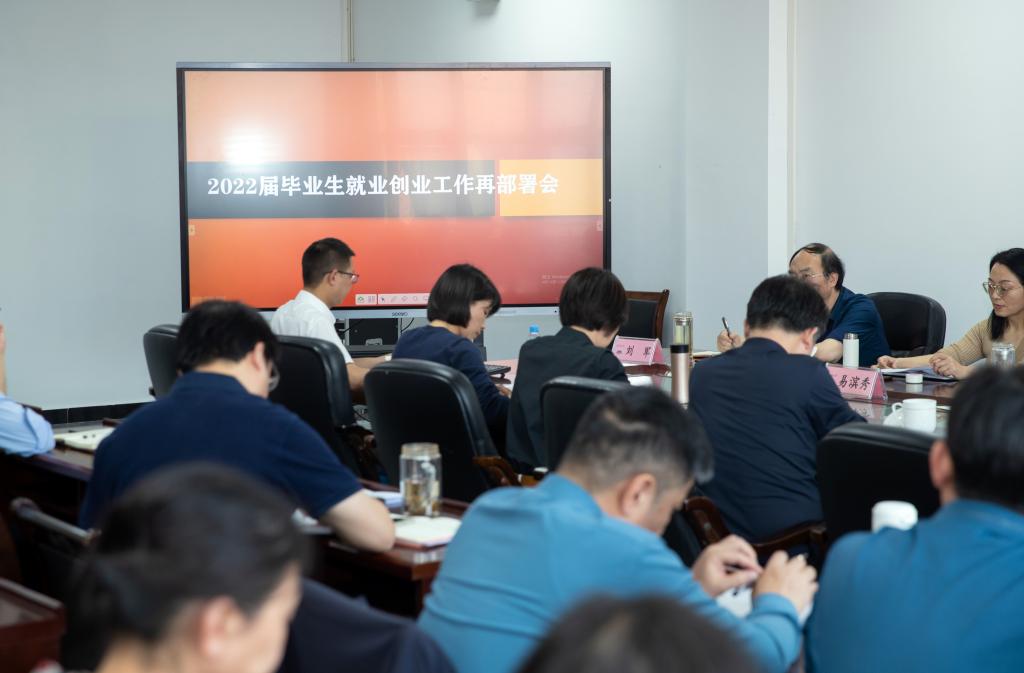 本站讯(实习就业处 袁剑峰)根据省教育厅和人社厅联合举办的全省普通高校毕业生就业创业工作第二次视频会精神,4月11日,36365官网在天工楼四楼第一会议室召开2022届毕业生就业创业工作再部署会,党委副书记、校长邱军及全部校领导班子成员出席会议,各二级学院院长、书记及相关部门负责人列席参加。