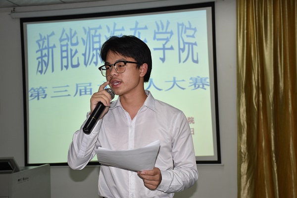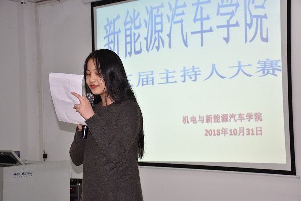本站讯(机电与新能源汽车学院罗振学生记者刘丽)为进一步丰富我院学生课余生活,弘扬校园文化,2018年11月1日晚,第三届主持人大赛在办公楼206室隆重举行,通过初赛与复赛的层层选拔,共有24名选手进入决赛。学工部郑玮洪,罗振,邬江琪,蔡佳琪,教务部李燕兰,吴旭周等6位老师担任评委。