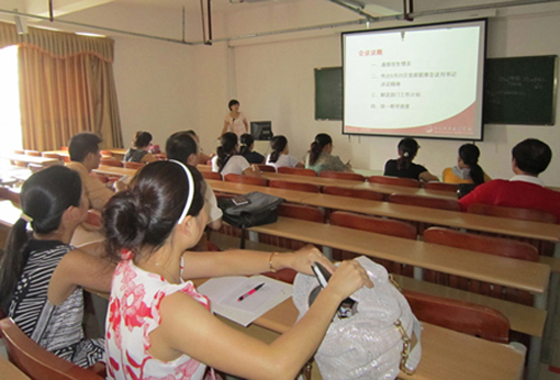 本站讯(思政部 李继民)8月31日下午,思政部在实训大楼409多媒体教室召开新学期全体教师会议。会议由思政部主任杨莉主持。会议主要有四项内容:一是通报学校招生情况;二是传达学校8月25日党政联席会议上刘书记讲话精神;三是部署本学期部门工作;四是统一教学进度。