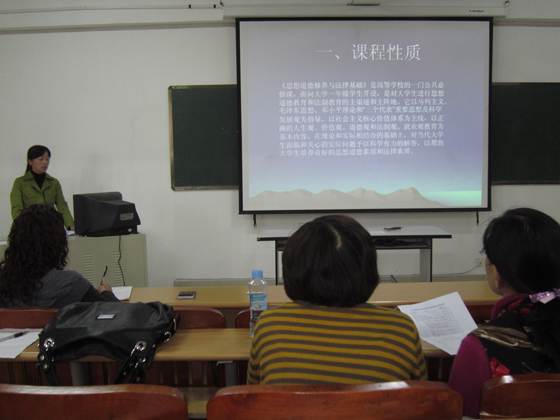 本站讯(思政部 张正芳)为了全面提高青年教师的教学技能,创造一个互相学习、互相提高的良好教学环境,促进部门教育教学质量的提高,11月9日下午,思政部在实训大楼409教室举行了青年教师说课比赛活动。