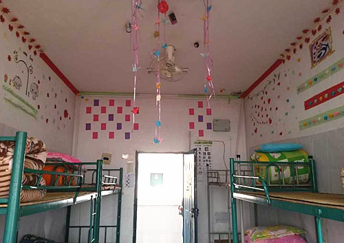运动会期间,由学生会宿管部主办的星级寝室评比活动如期举行。打开寝室房门,干净的房间、整齐的被褥、洗漱用品的整齐排列彰显着同学们对生活的热爱。每间寝室都贴有寝室成员的照片和介绍,风格迥异:有的寝室精心布置的文化墙上摘抄很多英文诗歌,有的寝室陈列有古筝、小提琴等乐器,有的寝室蓝色的气球和花让人仿佛置身花海。评委们根据寝室布局、整洁程度以及文化气息认真打分。最终,5栋625寝室获一等奖。